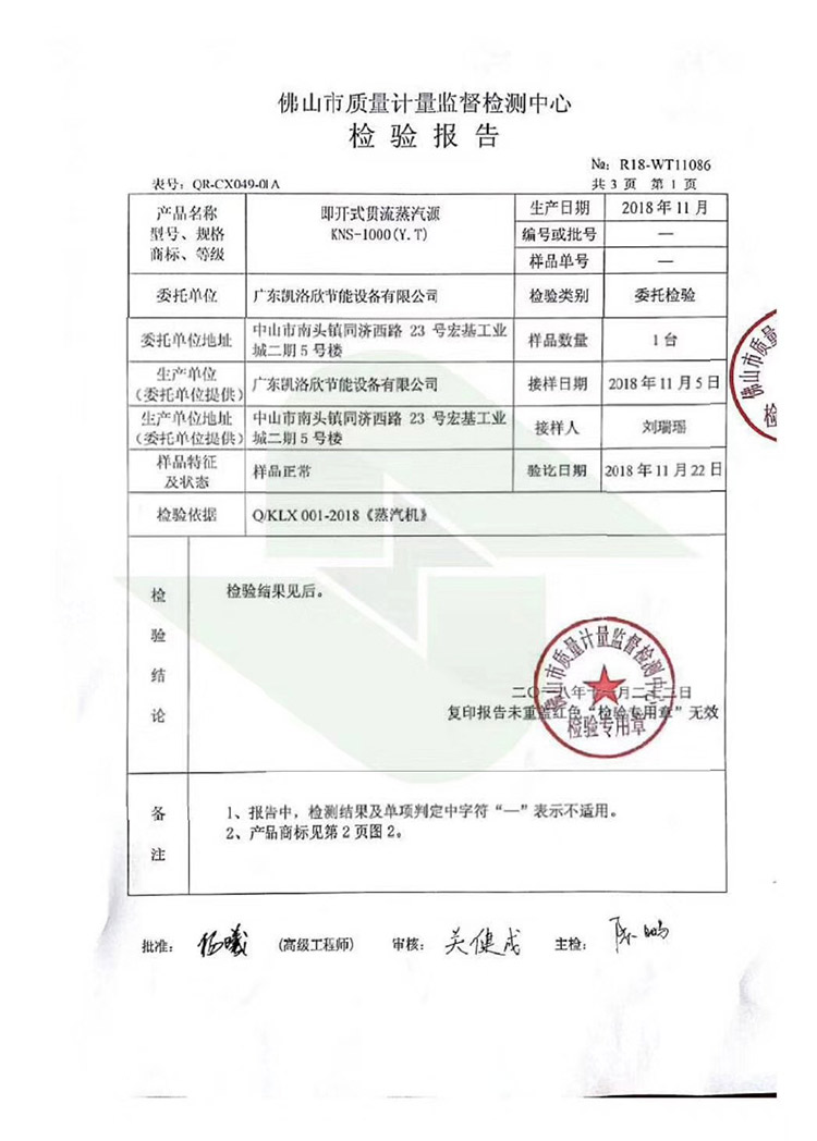 通过本次测验,我司的产品不仅能走向更广阔的市场,更为国家蓝天工程尽了一份力。余姚市凯大节能设备有限公司,是一家集研发、生产和销售蒸汽热源机于一体的厂家,主要产品有低氮锅炉、蒸汽发生器、燃汽锅炉、模块蒸汽锅炉等,品牌凯大kaida。