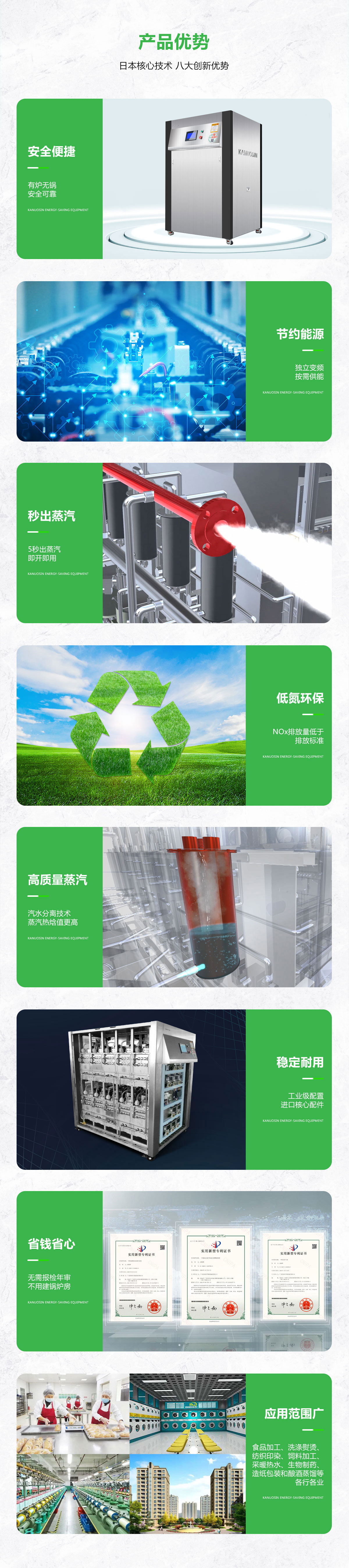 ☆凯洛欣智能变频蒸汽源采用行业先进核心变频技术,内置独立汽水分离器,保证蒸汽质量好焓值高,蒸汽含水量少于4%